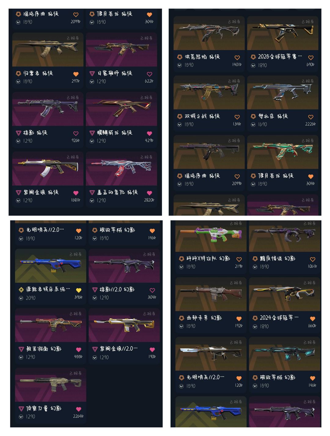 ★可排位 ★24 25冠军套★西部套★威龙套★掠影1.0 2.0套★鬼丸国纲★剥皮小刀