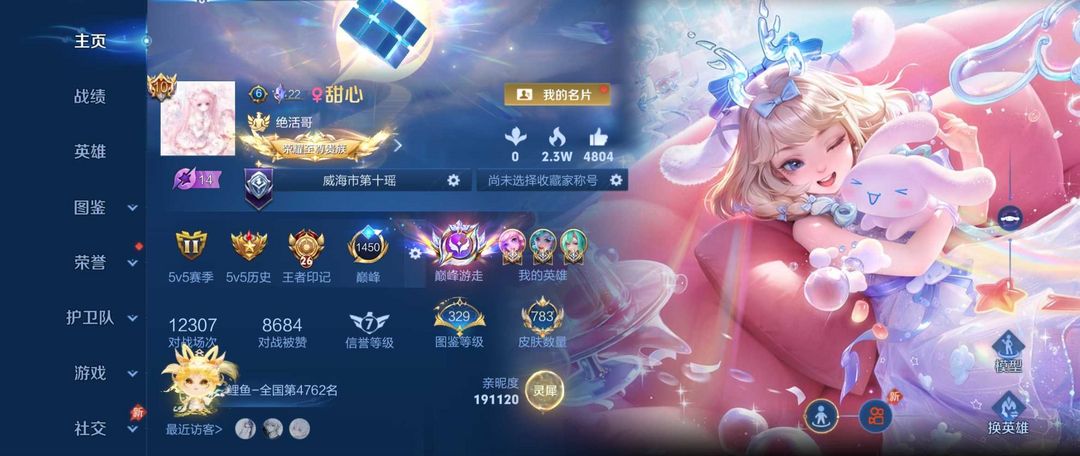 荣耀V10富婆女号瑶朵莉亚少思缘大桥巅峰万强主页纯满皮肤商城清空满福星灵宝满天幕在榜省瑶女号不禁言